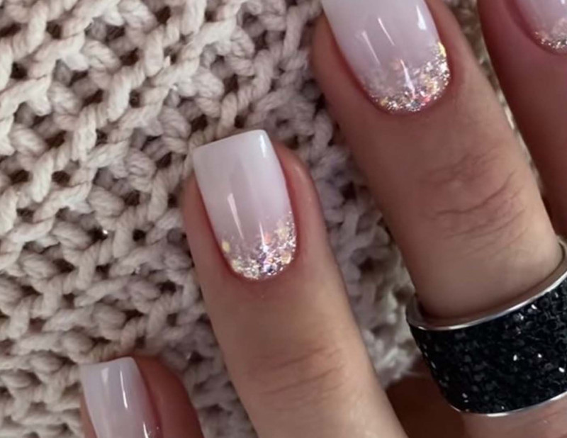 При помощи блесток можно оригинально оформить кончик ногтевой пластины или акцентировать внимание на одном из ноготков, украсив покрытие выбранными блёстками. Идея интересная и очень привлекательная