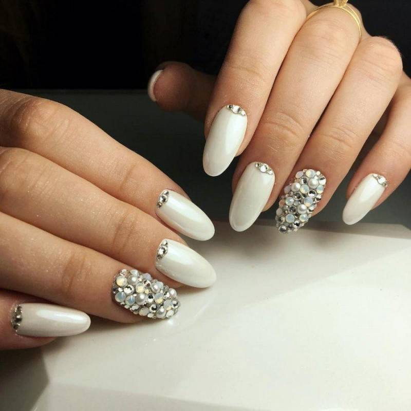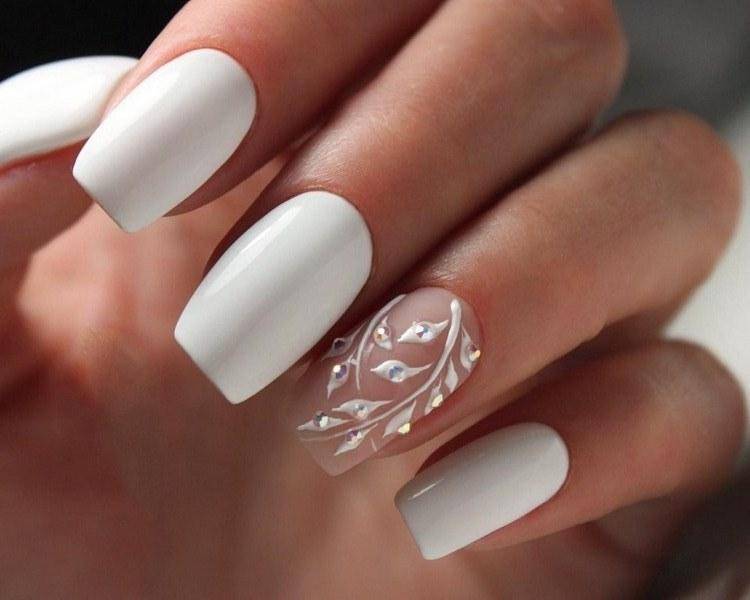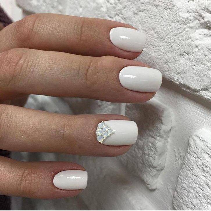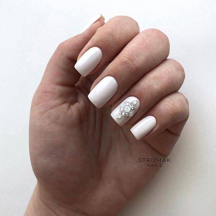 Если у вас белоснежное свадебное платье, белоснежный маникюр – ваш вариант. Он как ни один другой смотрится торжественно и дорого.