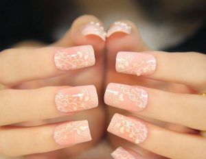 На длинных ногтях в свадебном маникюре лучше всего выглядят округлые мягкие формы. Если же вы любительница квадратной формы, выберите нюдовые оттенки и неброский дизайн. Отличным вариантом для квадратных ногтевых пластин станет нежный градиент или кружевной маникюр.