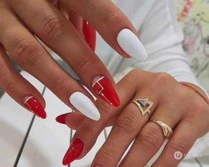 И даже классический красный цвет имеет право быть задействованным в свадебном маникюре, причем как в самостоятельном, так и во вспомогательном виде. Как вариант, можно использовать технику объемное кружево ришелье в белом цвете поверх такой базы, выбрав несколько пальцев, чтобы не перегружать дизайн.