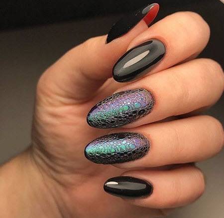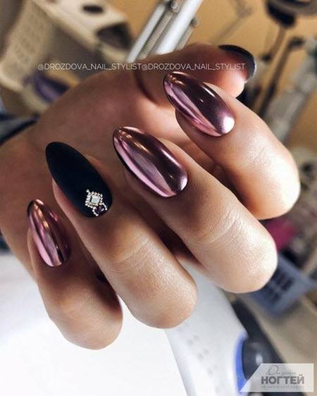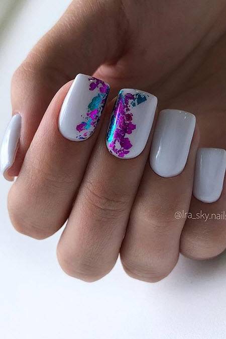 Еще один нетрадиционный вариант для любителей свадебных экспериментов, который прекрасно сочетается с нестандартными формами френча, цветочными мотивами и глянцевым финишем, добавляющим дизайну глубины.