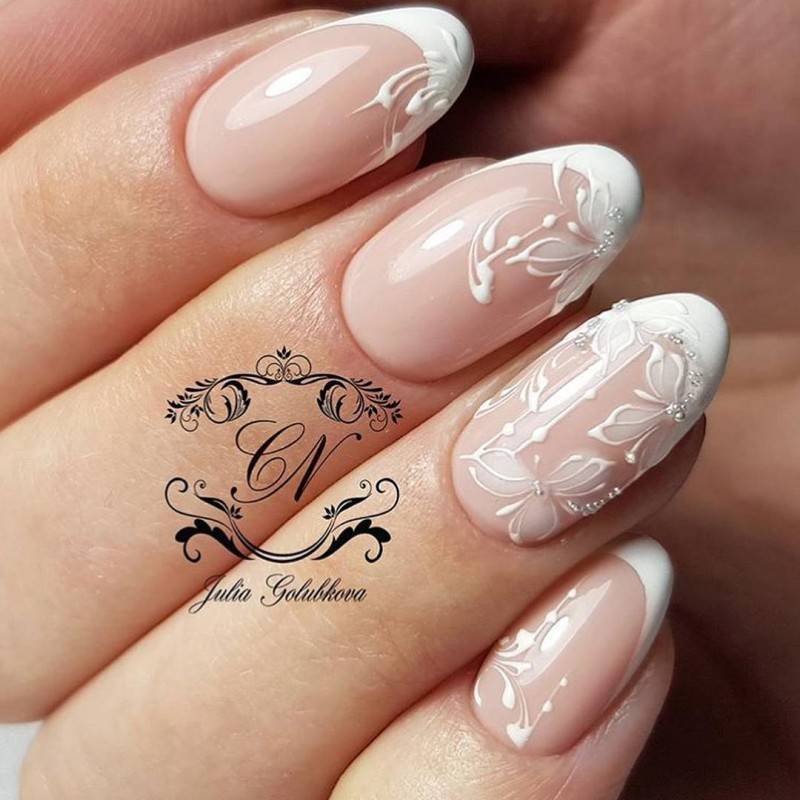 Нежный свадебный маникюр для длинных ногтей