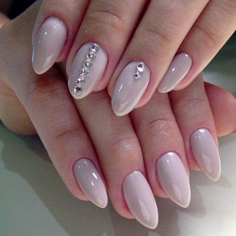 Нюдовые оттенки вот уже не первый год пользуются огромной популярностью в нейл-дизайне, даже если он относится к свадебному. Среди возможных вариантов – античная роза (пудра), светлый беж и даже небесный голубой, каждый из которых прекрасно сочетается с базовым декором в виде выложенных по ногтевому ложу в одну линию страз, самого мелкого шиммера, лепки и прочих вариаций на тему.