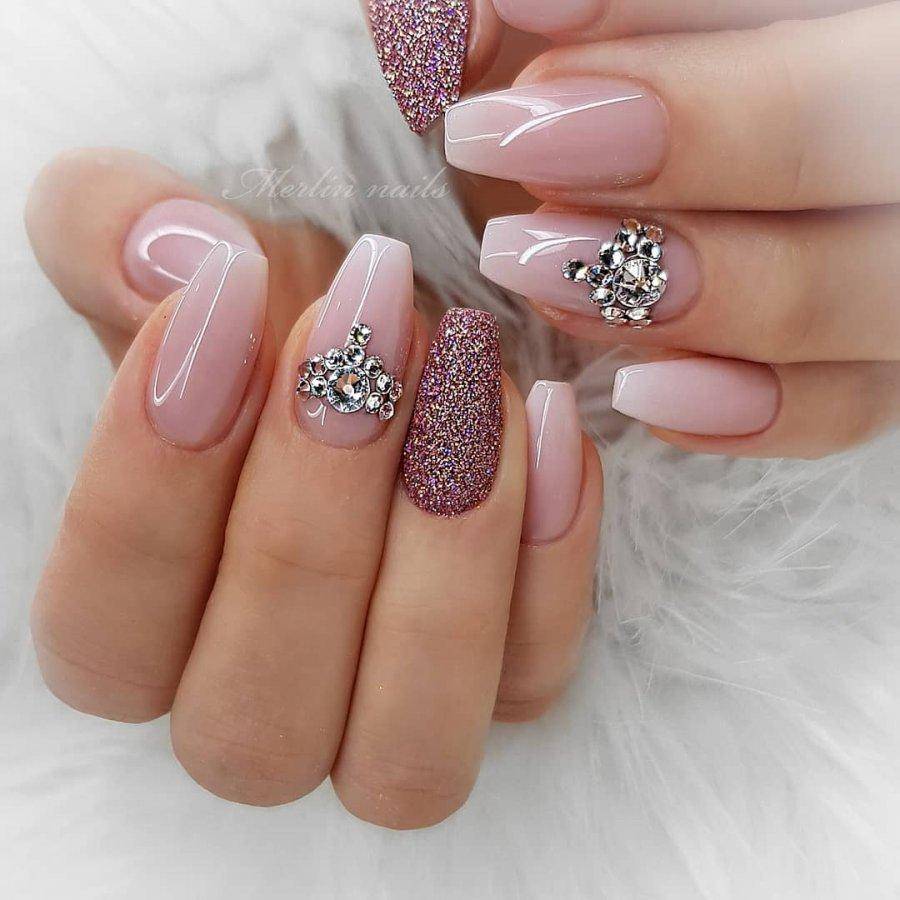 Для невест, которые хотят добавить гламура и дороговизны своему образу, маникюр с украшениями из стразов и глиттера – идеальный выбор. Можно создать изящные узоры из страз или нанести глиттерное покрытие на один или несколько ногтей. Это добавит вашему образу дополнительную роскошь и сияние.