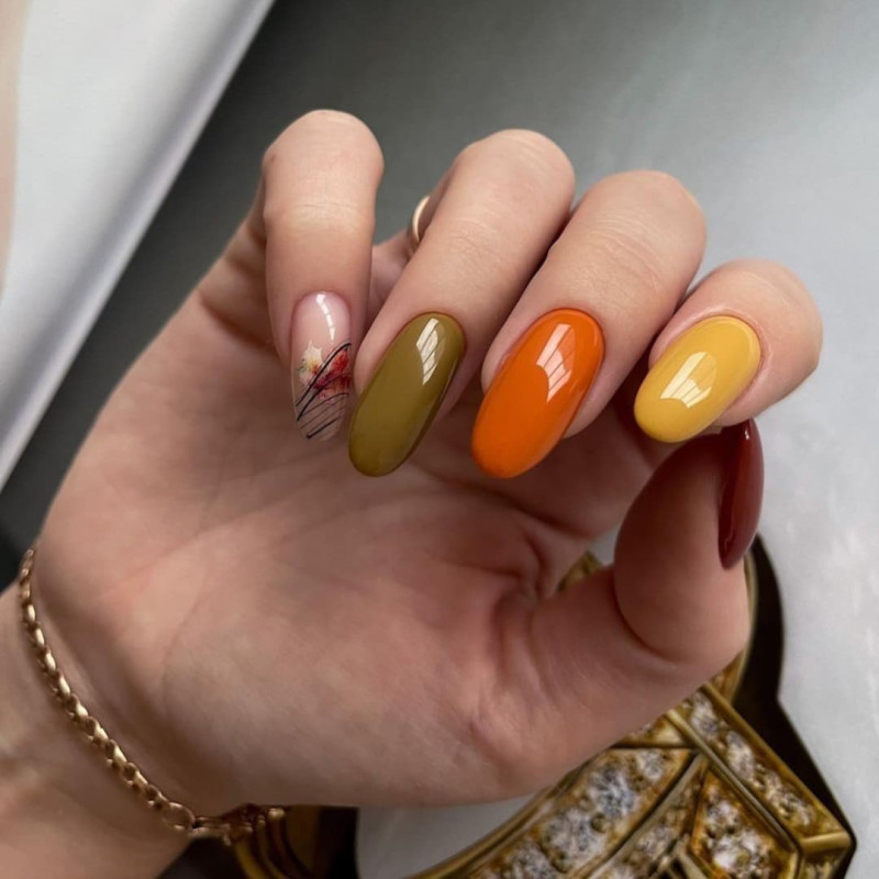 Она весьма разнообразна и многогранна. Можно один цвет использовать в различных оттенках на каждом пальце. Но будьте осторожней с цветовой гаммой, чтобы не выглядело безвкусно или вульгарно.
