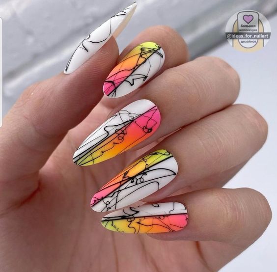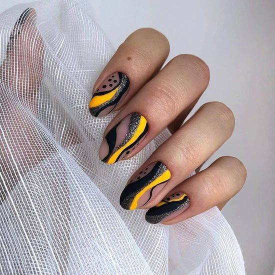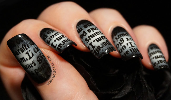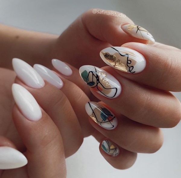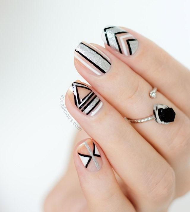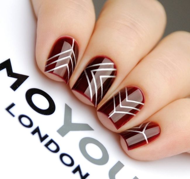 Внимание: фольга отлично сочетается с таким абстрактным нейл-артом. Просто напечатайте на серебряном или золотом цвете, и ваш маникюр засияет по-новому