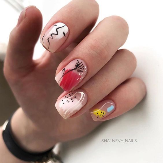 В 2022 году уже наблюдается увеличение количества поисковых запросов и еще большая популярность абстрактного маникюра. Необычные завитушки, точки и странные ретро-рисунки в моде! Все лучшее из 1960-х и 1970-х годов можно использовать для декора ногтей.