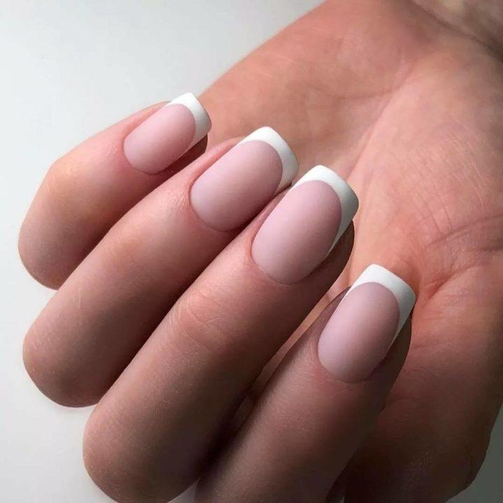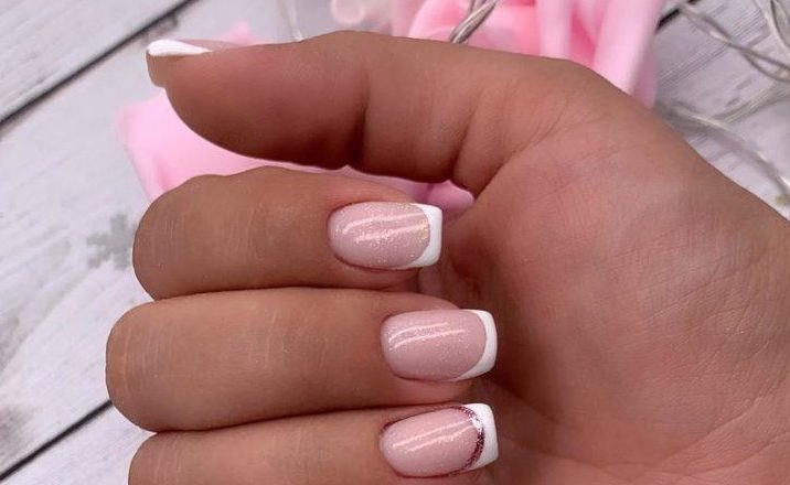 Модный френч на квадратные ногти – это чистая классика, где присутствует белый, розовый, бежевый, кремовый и слоновой кости оттенки. Допускается выделение дополнительными украшениями, наклейками и декором.
