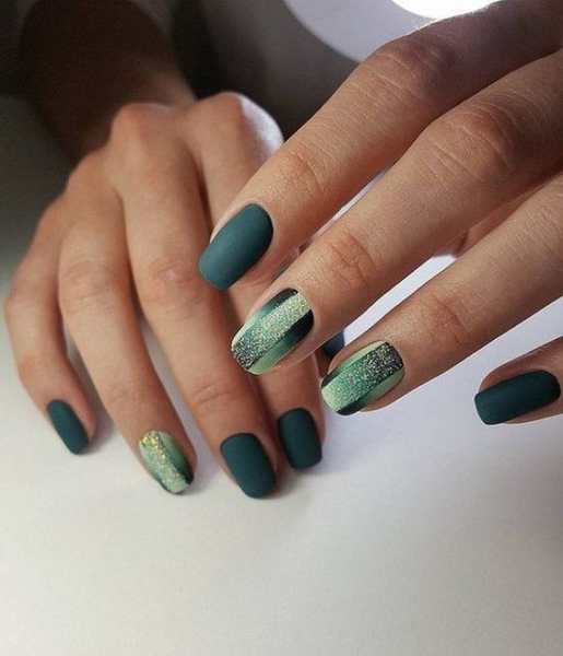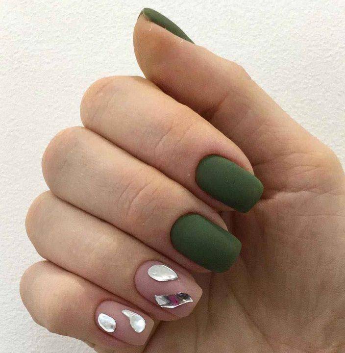 Кто бы мог подумать, что зелёный цвет лака будет лидировать в осеннем маникюре – модный и популярный цвет. Что выглядит эффектно в этом сезоне? Это зелёный однотонный маникюр или комбо зелёного с синим, серым, оранжевым или фиолетовым. Хотя можно выбрать любой вариант. Больше идей в подборке ниже.