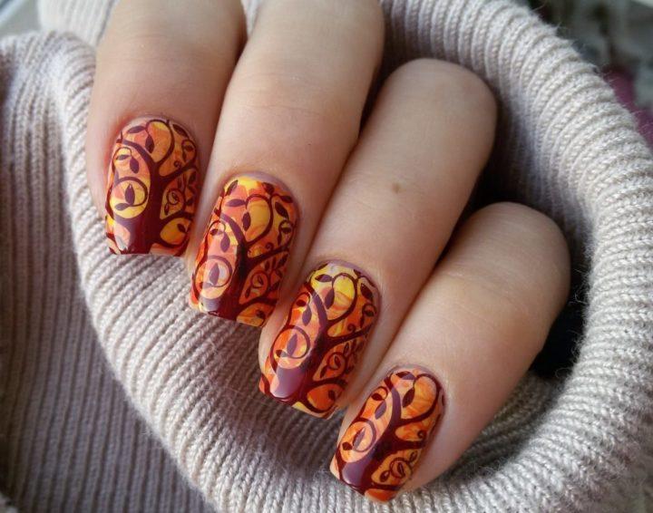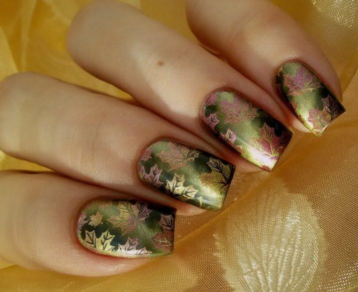 Стемпинг создается с помощью специальных трафаретов, которые помогают образовать на ногтях красивые, аккуратные рисунки. Осенью этого года будет популярным стемпинг в осенней тематике. В продаже есть трафареты с изображением осенних листьев, дождя, луж, зонтов и другой атрибутики осеннего периода.