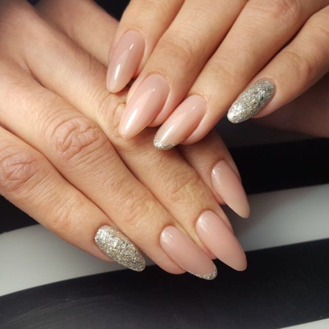 Осенний маникюр должен подчеркивать это прекрасное время года. Хорошо, если он тесно перекликается с цветом осени. Золотая листва, серебряная паутинка, блеск дождя и первого инея. Именно поэтому сверкающий дизайн подойдет, как нельзя лучше для осенних дней. Главное условие, которое нужно соблюдать, это мера! Слишком большое количества блеска привлечет сорок, а не восхищение окружающих.