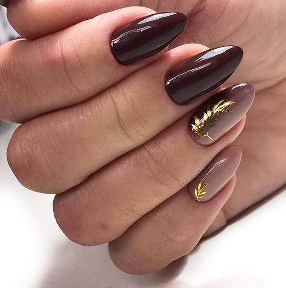 Вы не прогадаете, если выберете на осень этот вариант. Такое решение всегда уместно. Блеск золота притягивает взгляд, вызывая ассоциации с богатством и роскошью. Девушка с таким маникюром будет чувствовать себя красивой и уверенной.