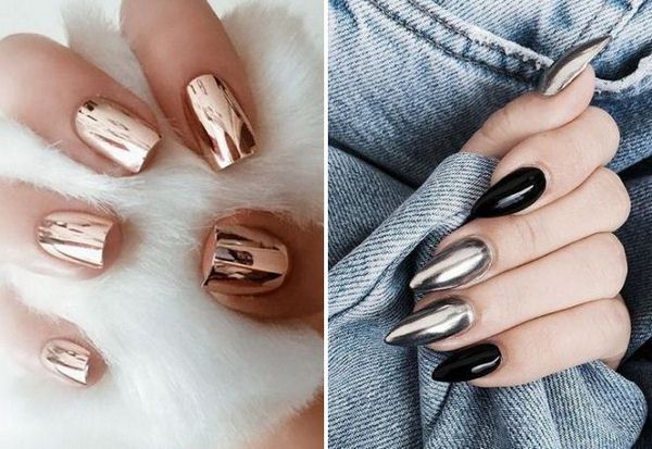 Блеск металла осенью 2023 года на ногтях обязательно должен присутствовать. Его можно создать при помощи: