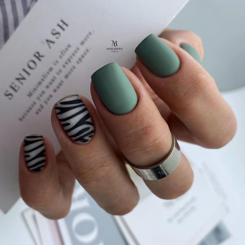 А в этой работе все модные тенденции 2021-2022 собраны на одних ноготках – трендовые цвета, матовое покрытие, “мраморный” дизайн. Сочетание очень удачное.