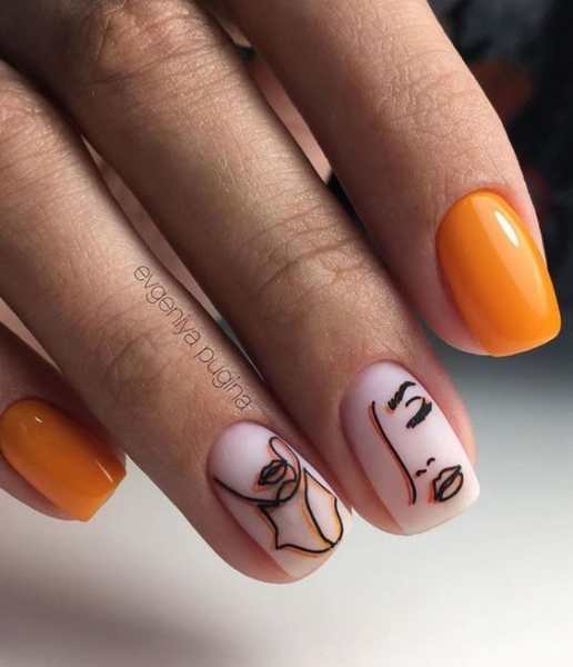 И ещё два любопытных варианта для тех, кто любит теплые оттенки в маникюре. Приглушенный или ярко-оранжевый, желтый – хит осеннего сезона не только в одежде, но и в маникюре. А также не забывайте, что в дизайн всегда можно добавить немного золотого декора.