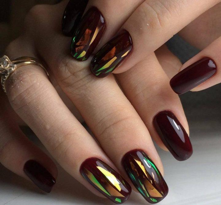 Бордовый, фуксия или алый в качестве покрытия ногтей будет всегда в тренде. И осенью используется для ногтей любой длины и формы, влияет цветом на восприятие. Такие оттенки позволяют маникюру выглядеть ярко и модно.