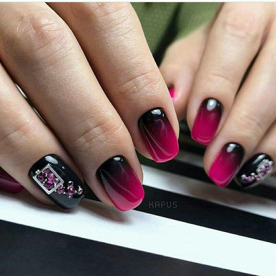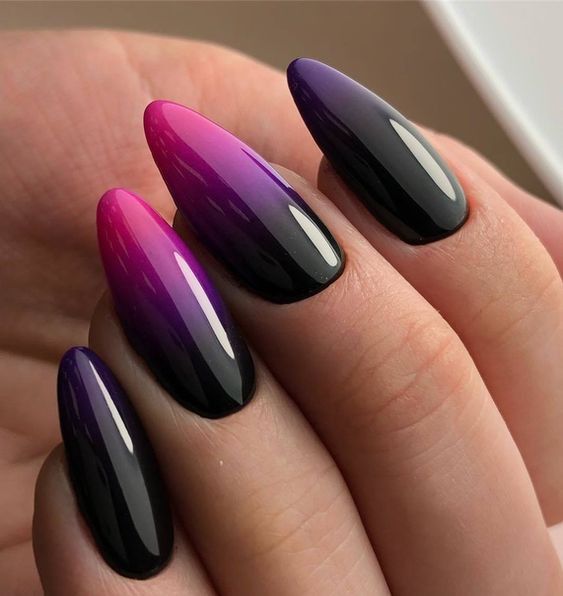 Он пользуется спросом у нейл-мастеров и их клиентов уже более 5 лет. Это техника, при которой один цвет плавно переходит в другой. Эффект гладкости достигается за счет смешивания близких оттенков. Здесь можно использовать любые цвета и тона: темные, светлые, яркие, нестандартные сочетания.
