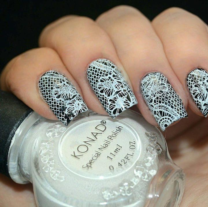 Он может быть выполнен с эффектом 3D, кружевными узорами, металлом и оригинальными рисунками. Он позволяет сделать необычный дизайн загадочным. Важным преимуществом является простота и легкость его выполнения. Результат удивит даже самых требовательных модниц. В тренде наклейки с листочками, зверушками и грибами.