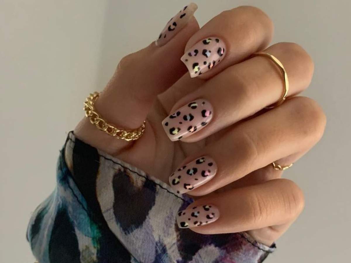 Это очень смелый дизайн. Главное правило: основа должна быть нюдовая. Так ногти не будут выглядеть вульгарно. Светло-розовая основа с добавлением золота и леопардового принта – хит осеннего сезона.