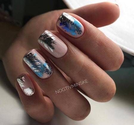 маникюр с перьями