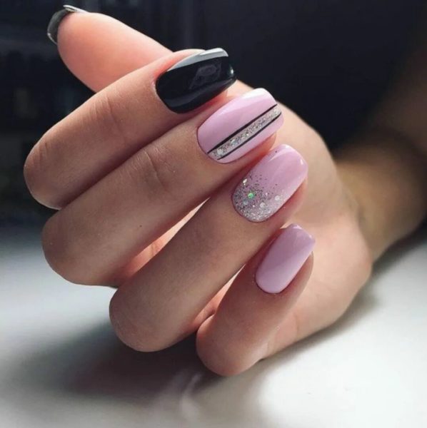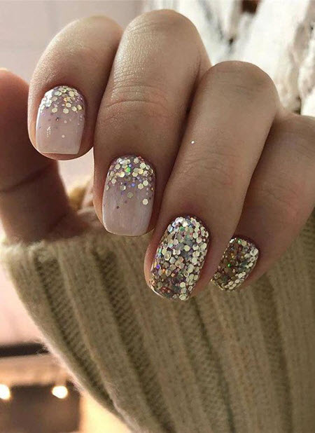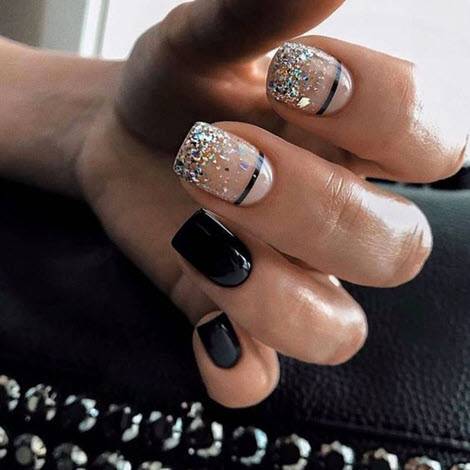Модный маникюр с блестками на короткие и длинные ногти