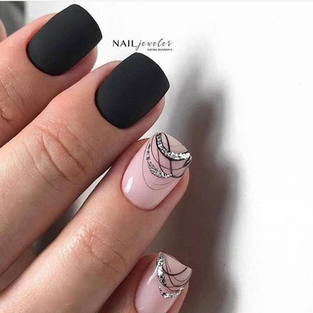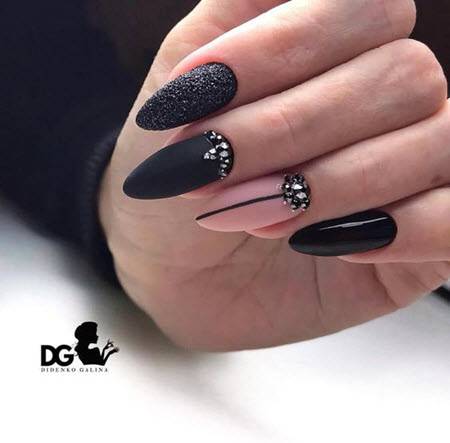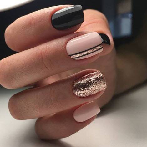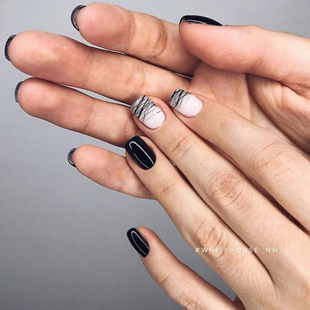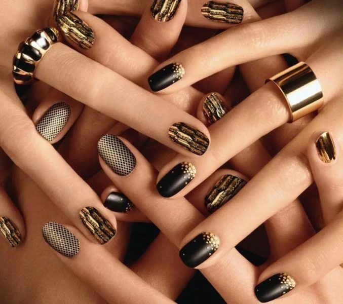 Фон или рисунок в черном цвете придаст образу экстравагантности, поможет сделать руки центром внимания. На нем хорошо смотрится золото, блестки. А также алый красный лак, как символ женственности подходит ярким личностям, станет отличной основой и добавочным цветом в сочетании с золотым, слюдой, бусинами, мраморным дизайном.