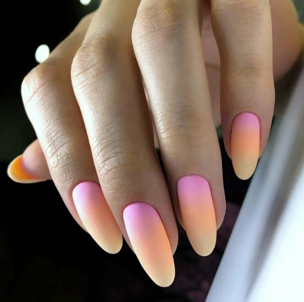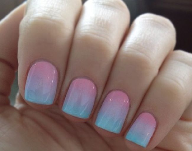 Если говорить о тенденции актуальной на лето в этом году, не стоит забывать об омбре. Этот дизайн ногтей строится на мягком переходе цвета из одного к другому. Чаще всего используются оттенки лака в одной цветовой гамме, но можно сделать и более креативный вариант.