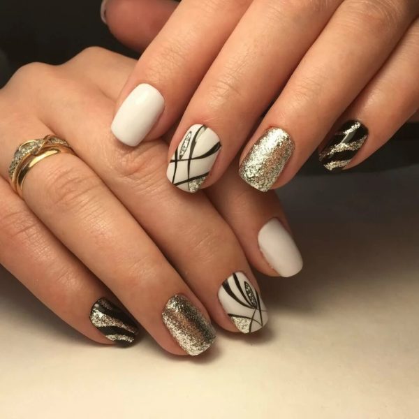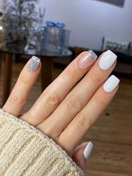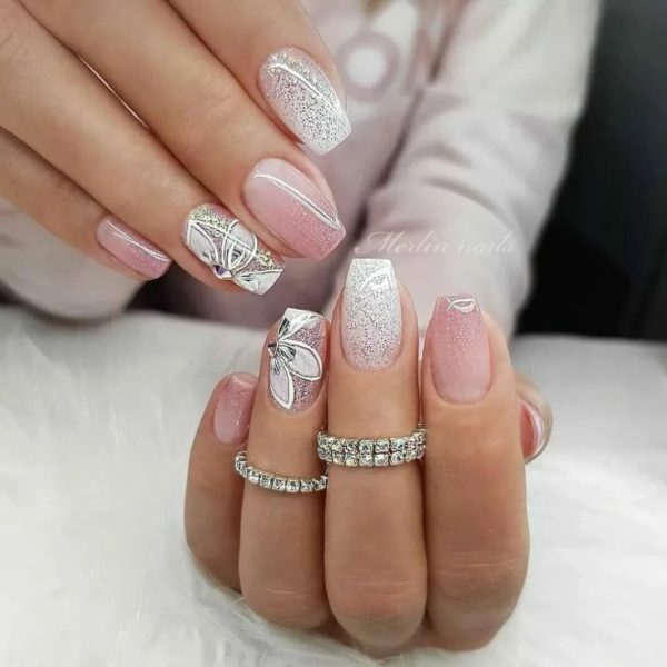 маникюр бело-серебристый