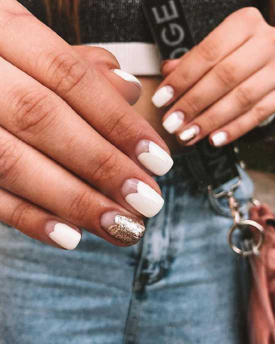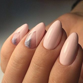 Если вам требуется модный маникюр для более повседневной ситуации, то можно использовать бежевый френч с блестками. Это уместно в офисной среде, а также такие идеи позволяют быстро «переиграть» ваш образ в романтичный, отправившись из офиса прямо на свидание.