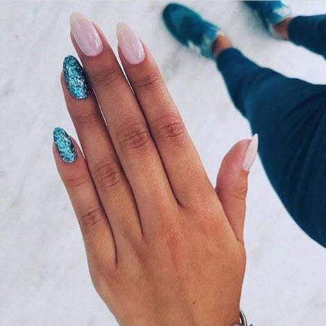 Если же говорить о блестках, то стоит обратить внимание на такой тренд, как французский маникюр, украшенный ими. Такие тенденции популярны в этом году, особенно на лето, когда хочется дополнительных красок