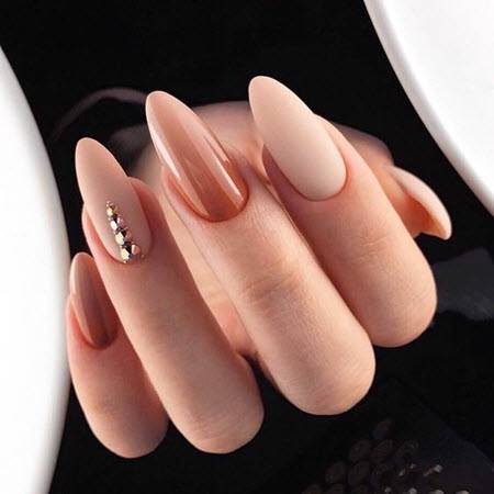Маникюр с камнями просто шикарно смотрится в матовом исполнении, такой дизайн не оставит равнодушным никого. В осеннем маникюре сезона 2020 камни и стразы наносятся на ногтевую пластину в виде красивого узора на один-два пальца, или в виде мелких камушек на всю ногтевую пластину, тоже в виде акцента. Идеи для вдохновения, смотрите на фото ниже: