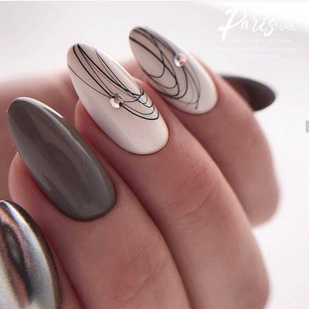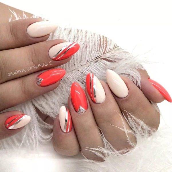 Начнем с одного с самых понятных дизайнов в двухцветном, либо трехцветном исполнении, что в этом сезоне преобразят ногти девушек и женщин разного возраста.