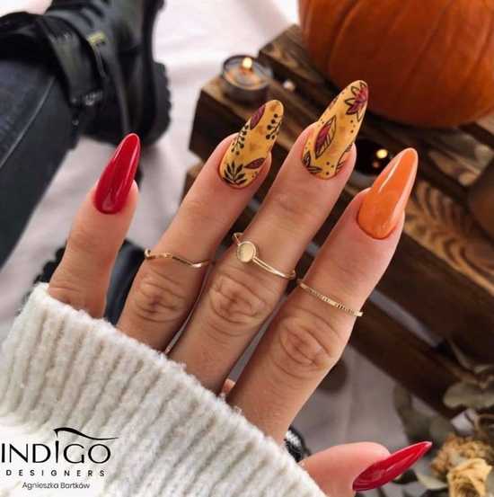 Красивые идеи маникюра осень 2021 с листьями