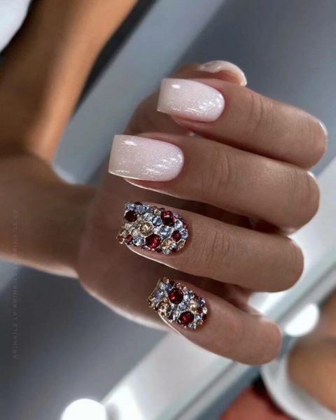 Однако не забывайте, что модный маникюр всего лишь подчеркивает свою обладательницу, а не перебивает все остальное, останавливая на себе взгляд. Учитывая этот тренд, идеальным вариантом будут стразы прозрачного цвета или с хамелеонным эффектом. Можно подобрать вариант очень близкий к оттенку лака.