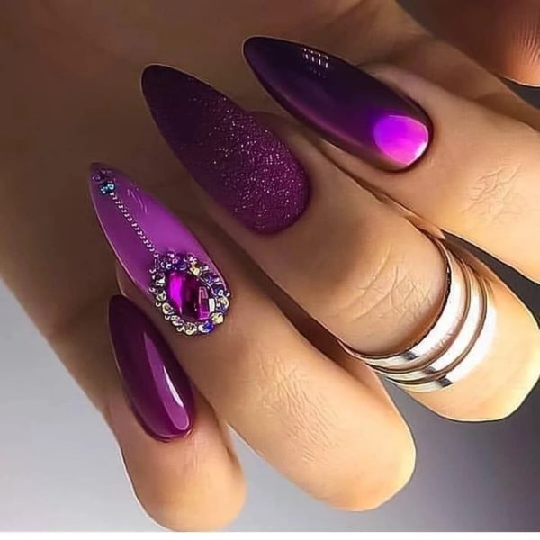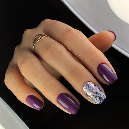- Пурпурно-фиолетовый — шикарный оттенок лака для маникюра в любое время года.