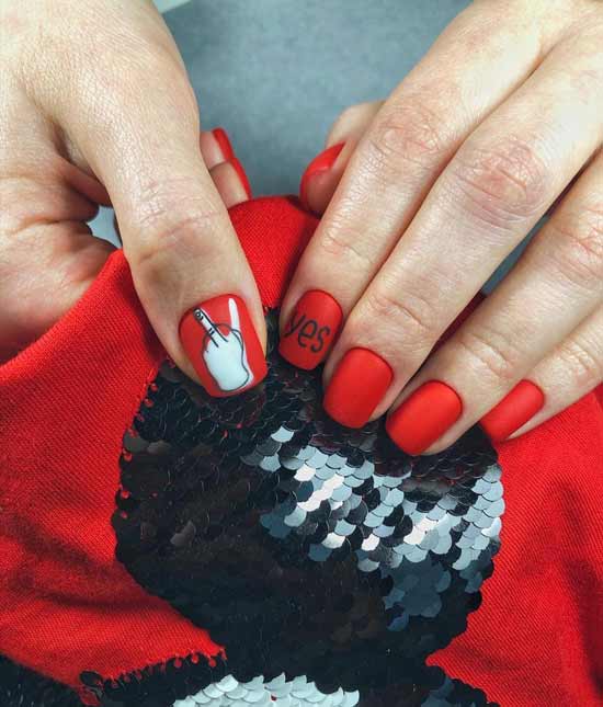 Красный цвет — тренд 2020-го года. Красные ногти давно стали классикой. Они актуальны всегда, везде и при любых обстоятельствах. Маникюр в красных оттенках отлично смотрится на ногтях любой длины и формы. За это его так и любят женщины всех возрастов. Цвет, правильно подобранный под оттенок рук, никогда не смотрится пошлым или вульгарным. Яркий красный можно разбавить несложным дизайном или добавить золотых блёсток. Стилисты рекомендуют использовать красный цвет осенью.