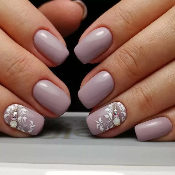 - Нюдово-розовый — приглушенный розовый оттенок лака, который можно сочетать с многими видами дизайна ногтей.