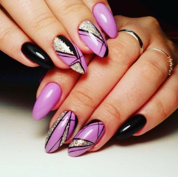 маникюр фиолетовый микс