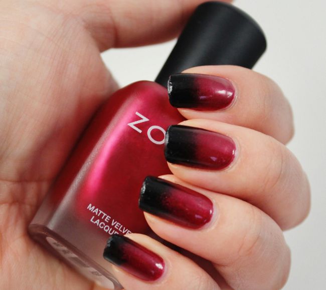 Чтобы сделать модный маникюр в стиле омбре, вам потребуется всего два оттенка лака, и обычная губка или спонжик. Какой цвет выбрать, решать вам. Однако сейчас очень популярен тренд красно-черного маникюра. Для создания градиента, необходимо подготовить ноготки к работе и покрыть их базовым лаком, например, красным.