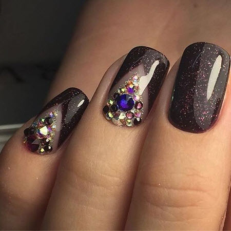 Осенний маникюр с камнями и стразами: фото 2020
