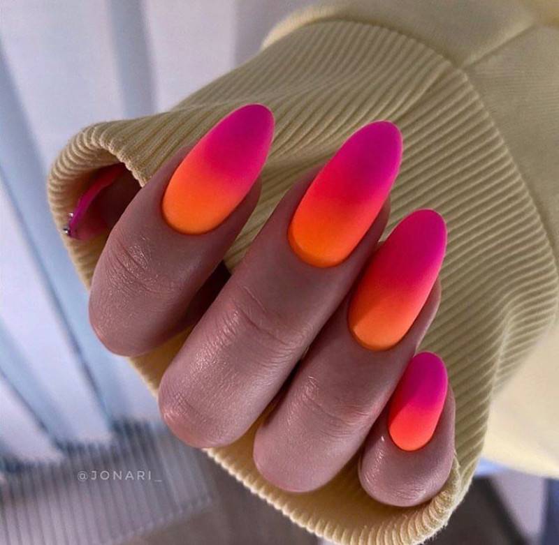 В целом яркий дизайн стал удачным девизом жаркого лета, поэтому стоит обратить внимание на технику градиент. Здесь благодаря кислотным оттенкам маникюр выглядит смело. К тому же подобные виды дизайна, но уже с пастельными тонами, подходят для повседневной носки и для официального мероприятия