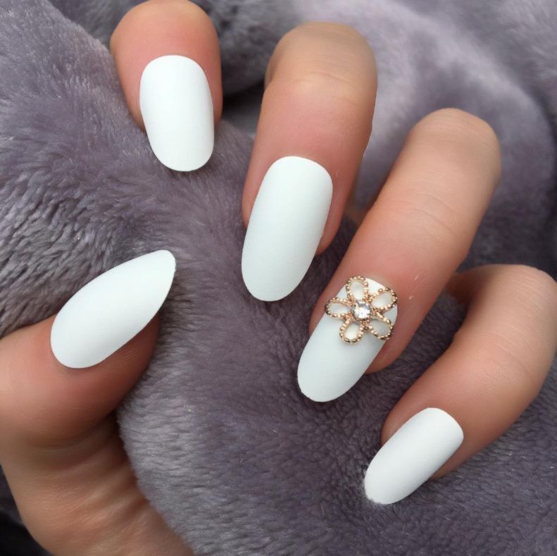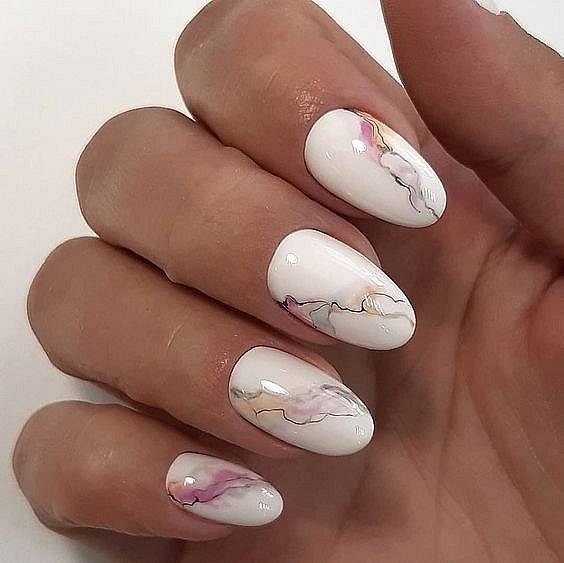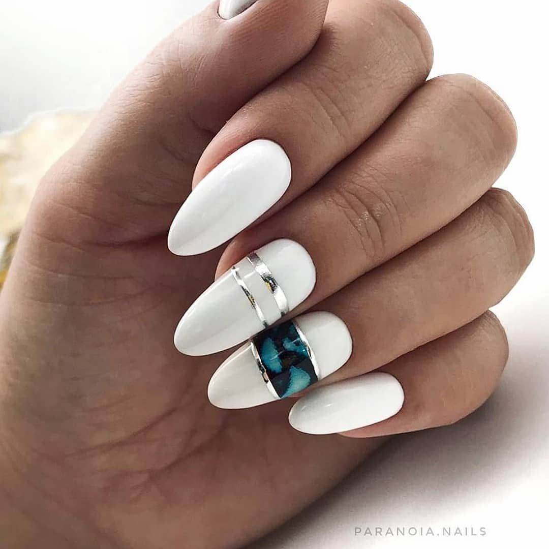 Белый дизайн маникюра отлично подойдет для тех, кто предпочитает свежий и воздушный маникюр. Можете поэкспериментировать и добавить какой-нибудь яркий акцент. Например, небольшой рисунок яркого цвета.