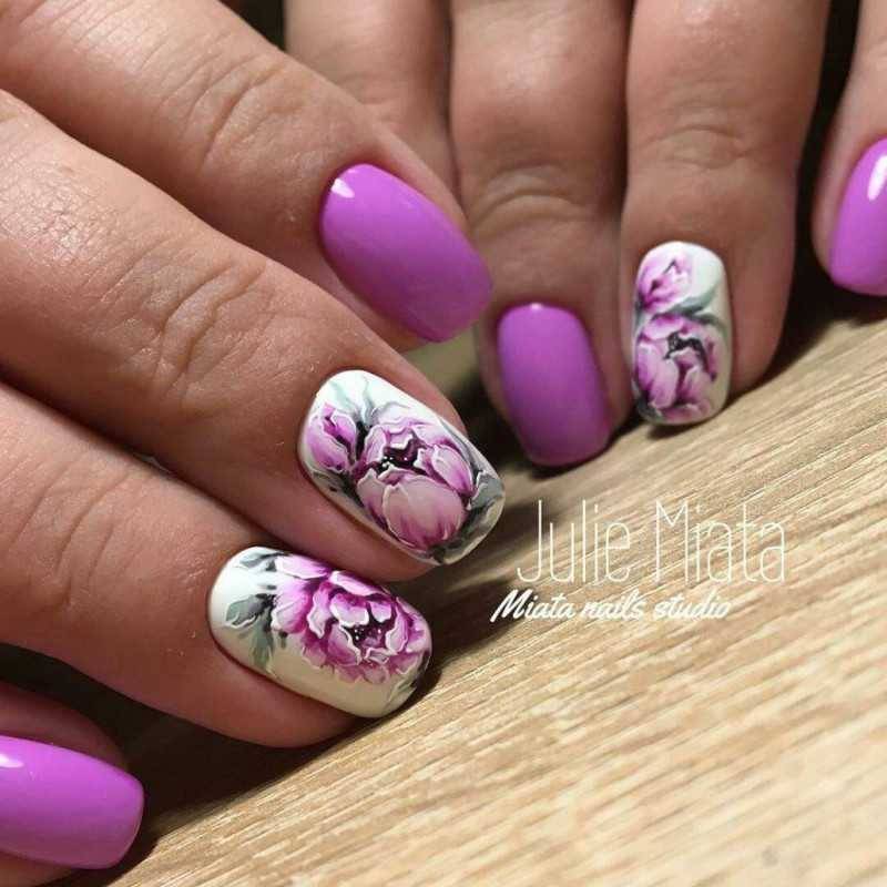 Маникюр с цветами – универсальное решение для женщин любого возраста. В зависимости от тематики рисунка маникюр может выглядеть нежно и воздушно, или, наоборот, вызывающе и эффектно. Предлагаем большую фото-подборку идей маникюра с цветами, которые вы можете использовать для собственных нейл-артов.
