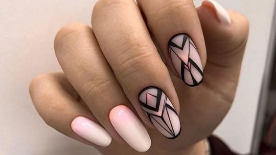 Хитом сезона станет градиентная геометрия, когда линия выглядит недорисованной с размытым краем, при этом желательно чтобы сам узор выполнялся из блестящего топа или пудры.