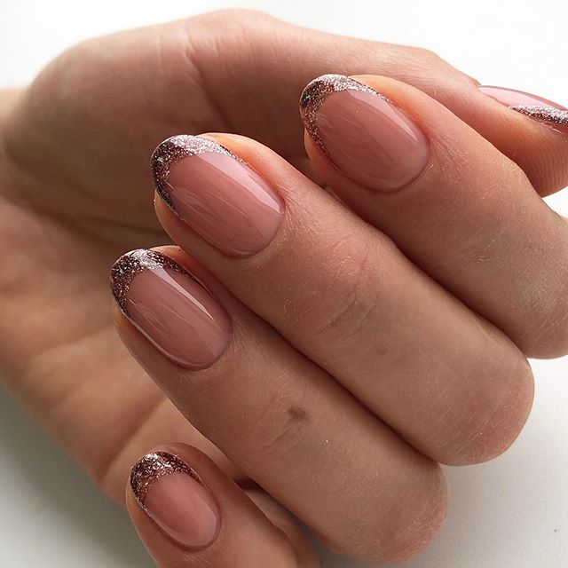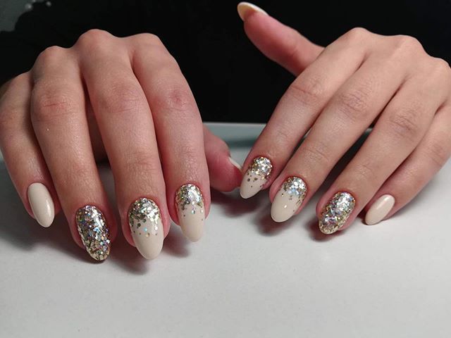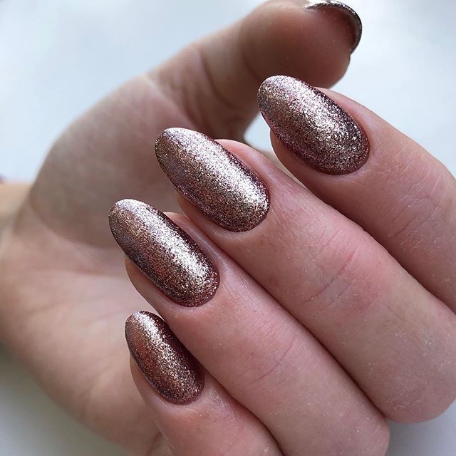 Такой дизайн отлично подойдет для вечернего образа. Нейл – стилисты используют блестки в самостоятельном виде. Но чаще всего девушки предпочитают наносить небольшое количество глиттера на один ноготок.