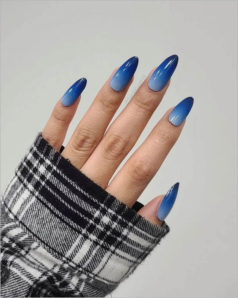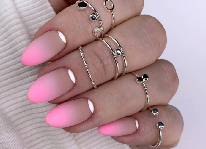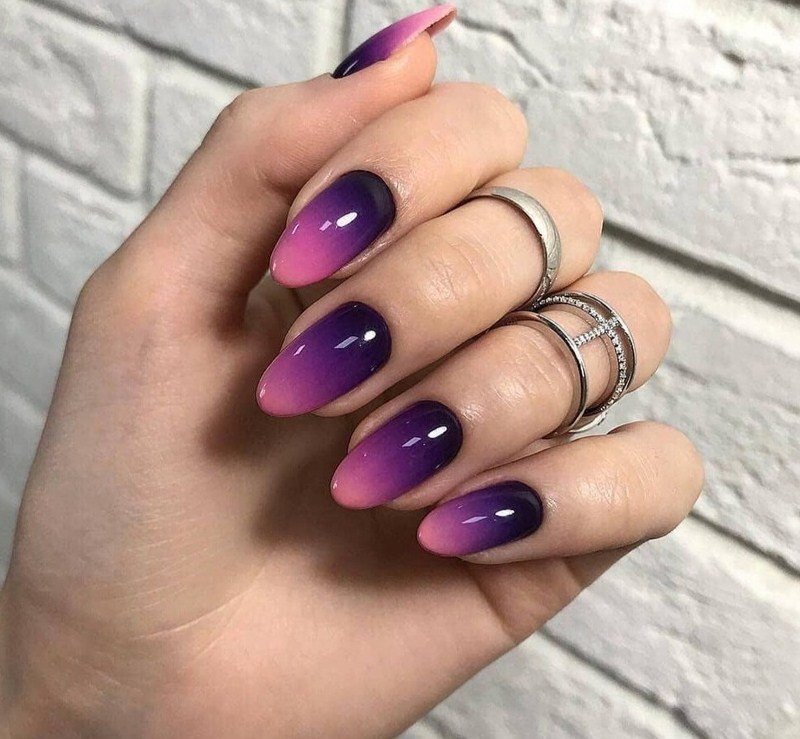 Обмре всецело завоевало сердца поклонниц маникюра. Nail мастера предлагают своим клиентам различные варианты от ярких контрастных решений до мягких, едав уловимых переходов цветового акцента, от горизонтальных направлений цветового возрастания, до вертикальных переборов оттенков. От полного охвата всех ногтей, до акцента на одном пальчике с едва уловимыми цветовыми разводами. В любом случае, омбре – решение которое сделает любые ноготки эффектными и оживит даже такую, казалось бы, спокойную форму как «овал».