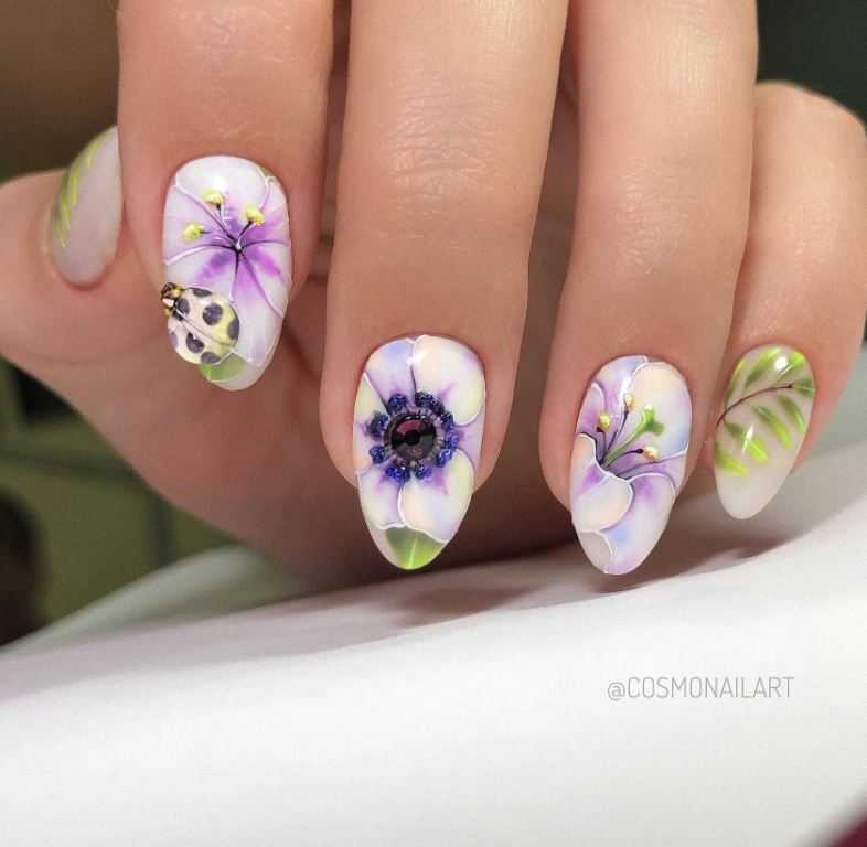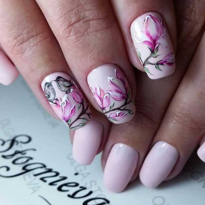 Если вы предпочитаете украшать свои ноготки лаконичными веточками, то дизайн с флористическими мотивами для вас идеальный вариант – он придаст женственности вашему образу. Кроме того, он популярен в любое время года. Весной и летом он вне конкуренции.