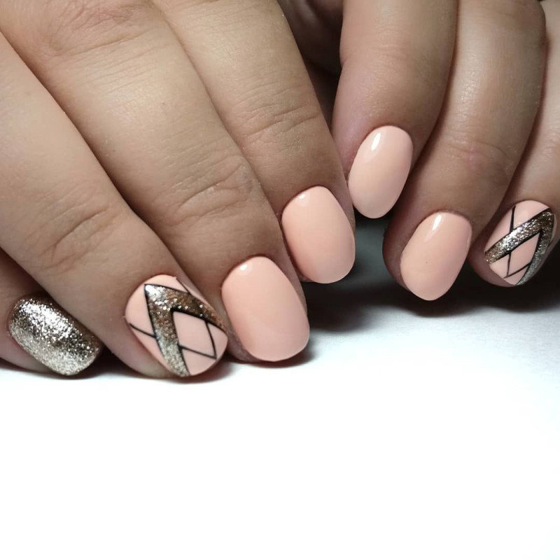 Геометрические рисунки также остаются актуальными по сей день, главное научиться правильно наносить их на ногтевые пластины. Гармонично такой дизайн смотрится в офисе, а если добавить блестки, то подойдет для праздничного образа.