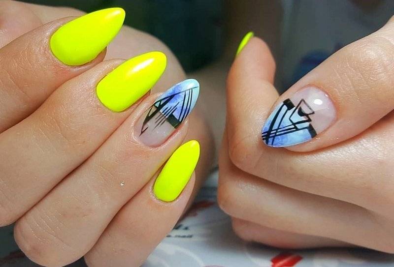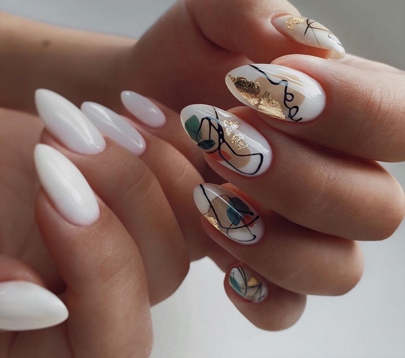Стильные идеи абстрактного маникюра смогут разнообразить ваши ноготки. Это совмещение краски, цветочной росписи и геометрии. Интересные идеи великолепны в различных образах – от повседневных до нарядных.