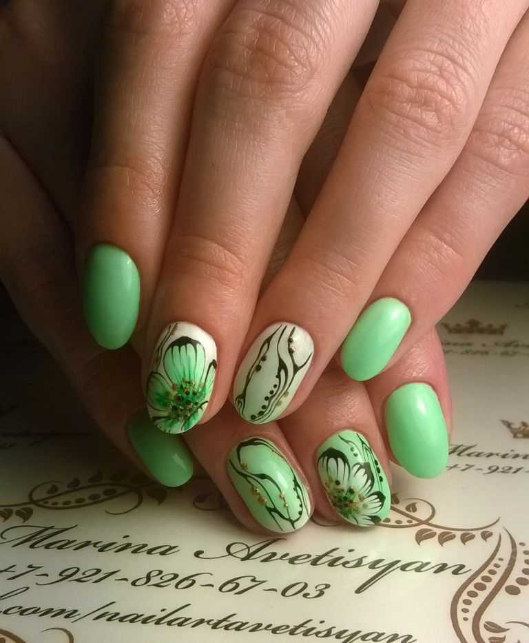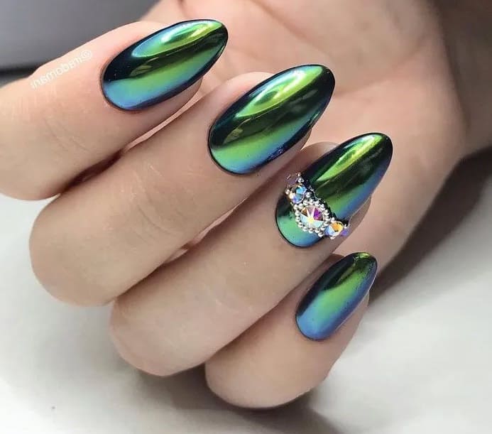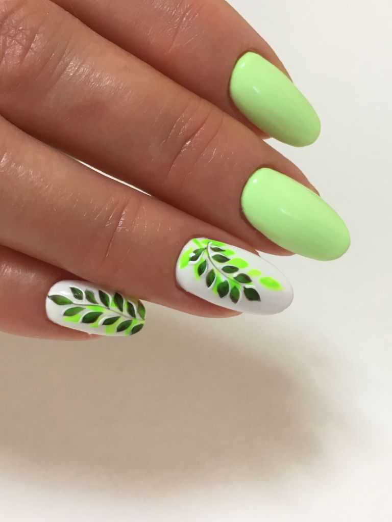 Зеленый и фисташковый станет особенно востребованным в сезонах весна-лето. Здесь смело можно поиграть с топом, поэкспериментировать с матовыми ногтями или блестками.